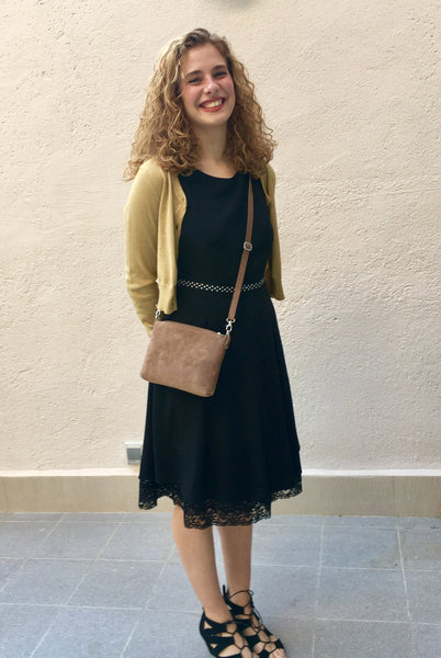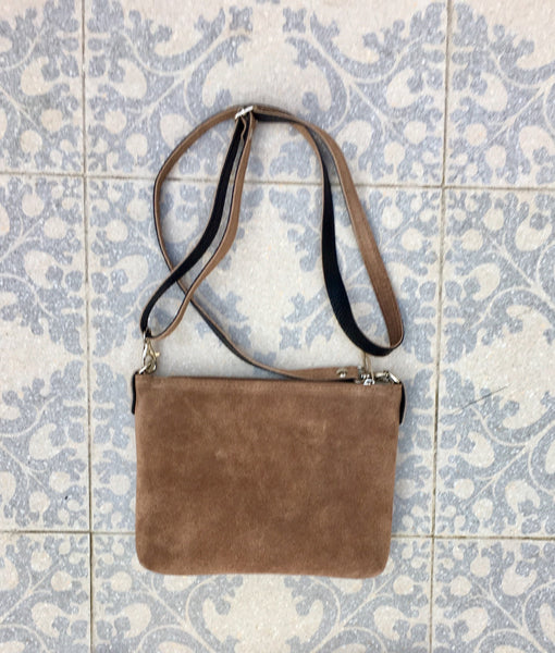 Suede leather bag in DARK BEIGE. Natural, soft genuine suede leather in a light brown shade. Small cross body bag in suede.