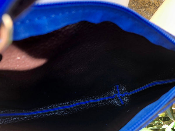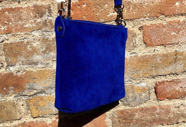 Suede leather bag in cobalt blue, a beautiful medium shade of blue. Small crossbody bag. Natural, soft genuine suede leather.
