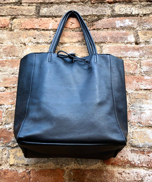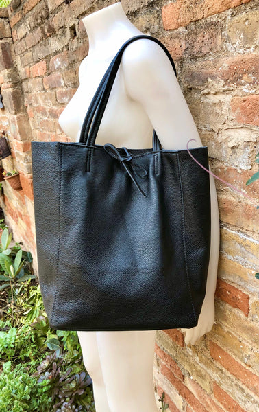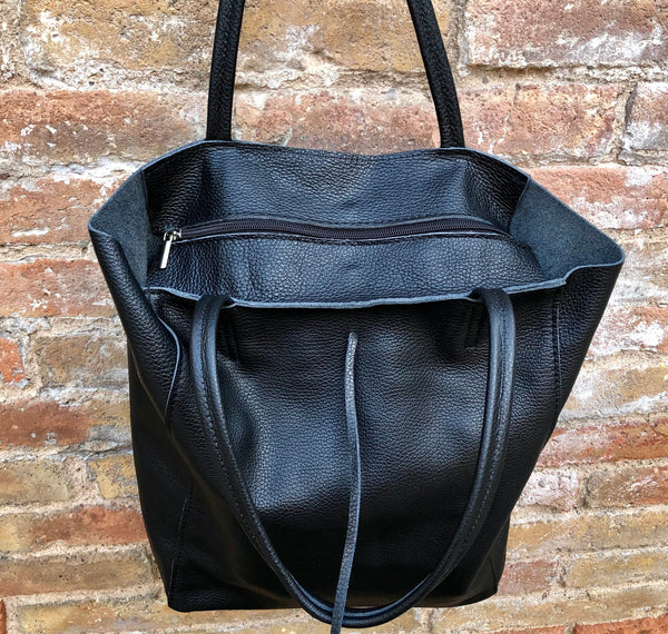 Large tote leather bag in BLACK with Zipper. Genuine leather shopper bag. Soft leather shoulder bag. Large enough for books or a laptop, tablet, cosmetics bag etc.