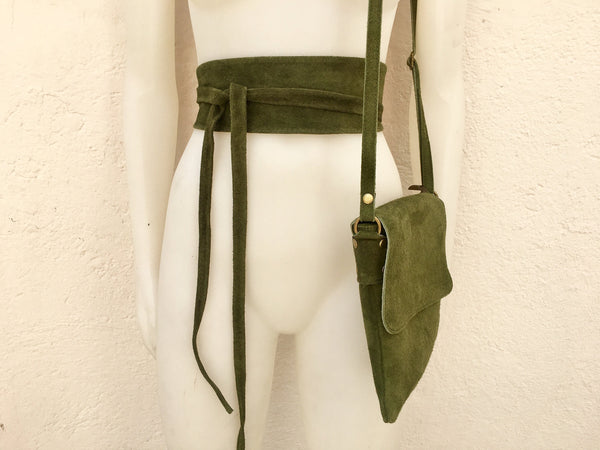Moss GREEN suede OBI belt. Wrap belt in natural soft suede. Green wraparound belt. Genuine leather boho belt. Green leather waist belt