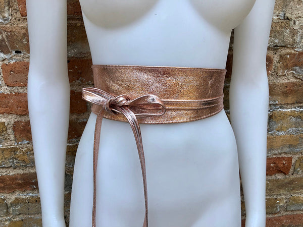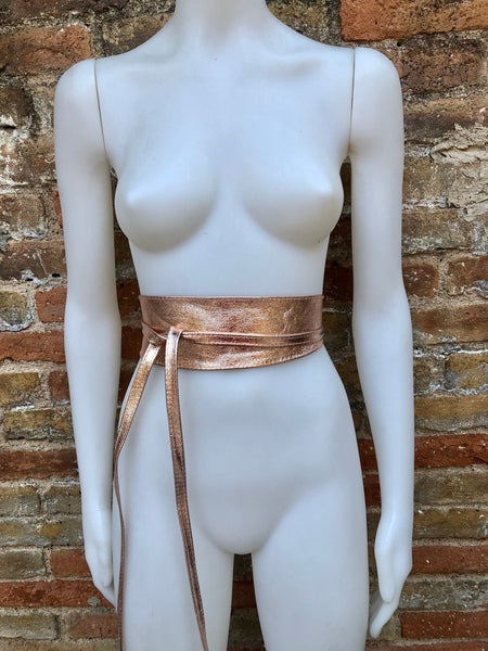 Golden pink OBI BELT in genuine leather. Wrap belt in soft pink shine leather. Leather SASH . Genuine leather waistbelt. Wraparound boho belt.Metallic effect wraparound belt in soft leather