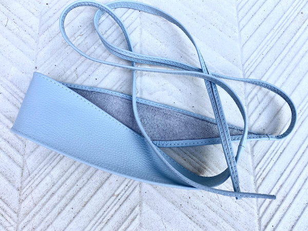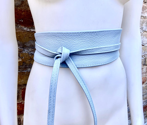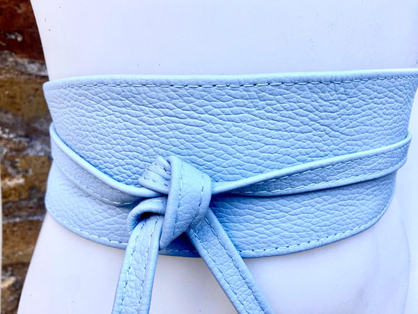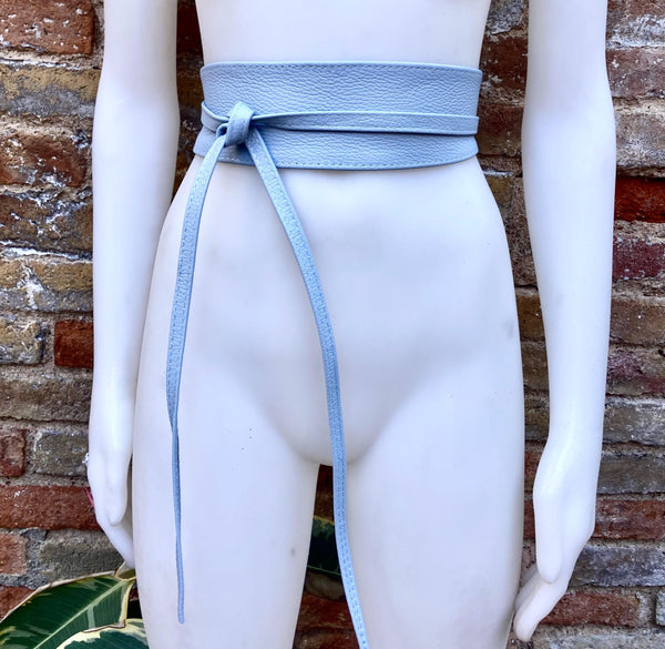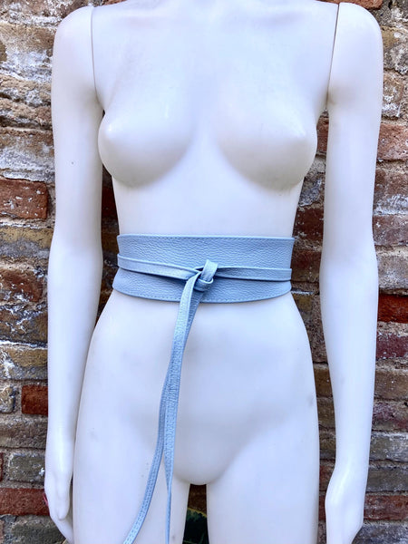Light blue OBI BELT in genuine leather. Wrap belt in sky blue blue . Waist belt in soft natural leather. Blue leather belt. Blue sash. Wraparound belt.