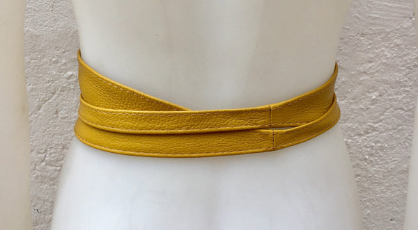 Obi belt in soft leather. Wrap belt in MUSTARD YELLOW. Waist belt in yellow. Mustard color wraparound belt. Yellow sash. Ibiza boho belts