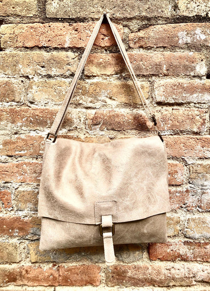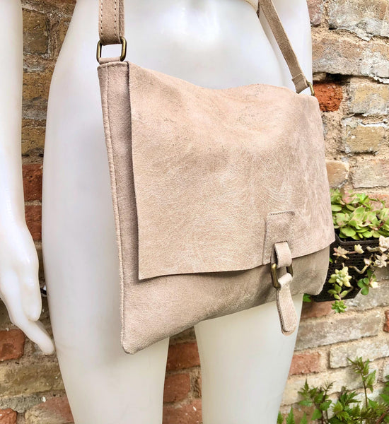 Light beige leather crossbody or shoulder bag. Beige leather purse.
