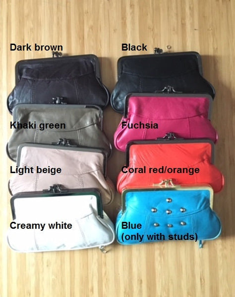 medium sized genuine leather metallic clasp purses: