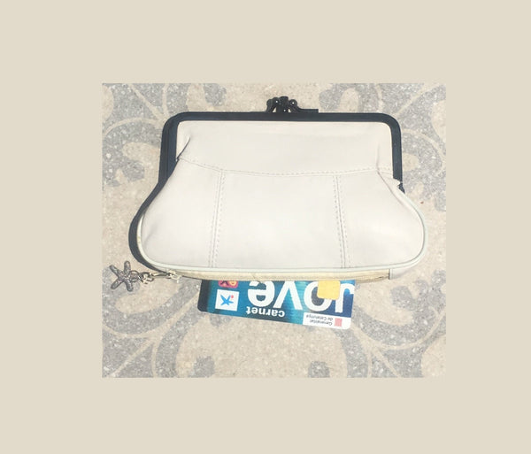 Genuine leather kiss lock wallet in creamy white. Retro inspired coin purse. Grandma wallet in genuine leather. Kiss lock and card zipper