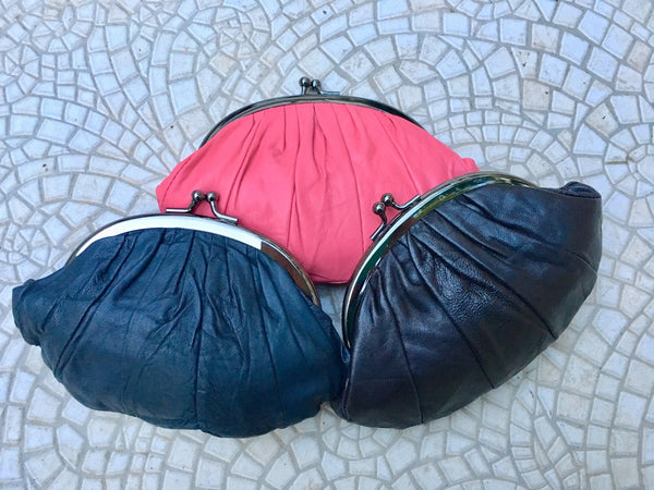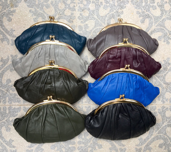 Back to all our large metallic clasp and zipper leather purses and cosmetics bags: