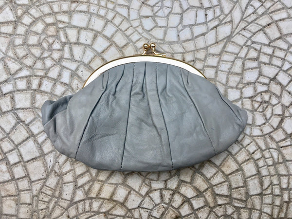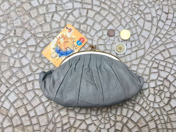 Kiss lock purse in GREY. Genuine soft GRAY leather. Retro inspired wallet, grandma style purse. Metal frame in gold. Vintage new coin purse