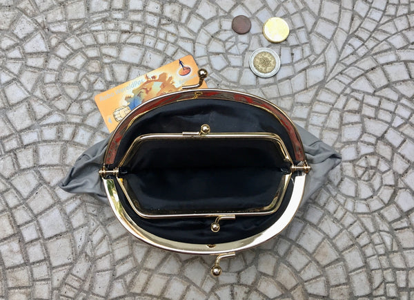 Kiss lock purse. Genuine leather grandma purse in GRAY. Vintage style purse in soft leather. Leather wallet in GREY. Coin purse with metal frame in GOLD color and extra kiss lock pocket inside for coins, to help you keep bills,coins and cards separate inside the purse.