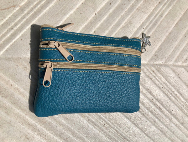 Small genuine leather coin purse. Leather purse or wallet for cards, coins etc
