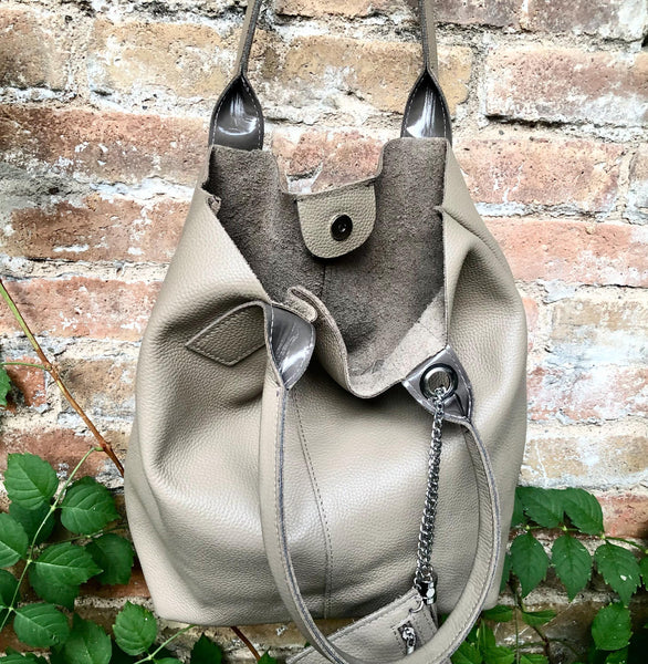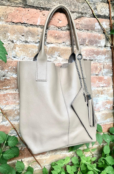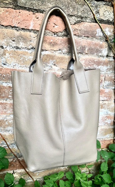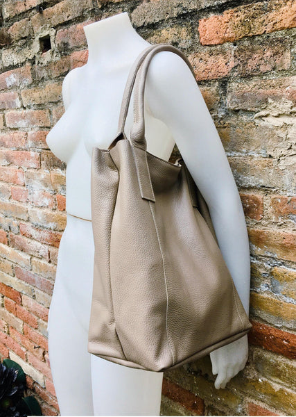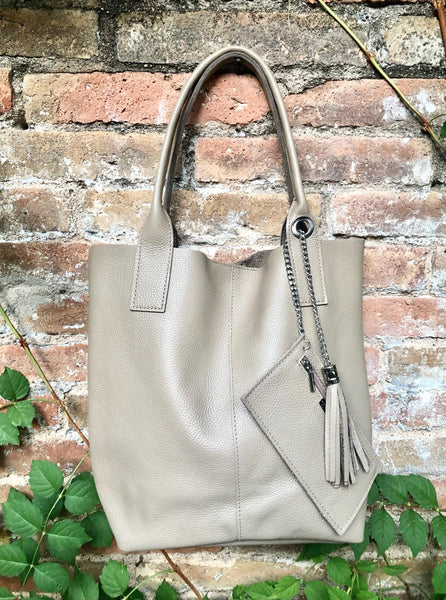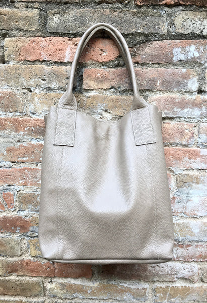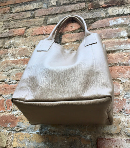 Large tote leather bag in beige. Shopper bag in natural GENUINE leather. Large enough for books or a laptop, tablet, cosmetics bag etc.