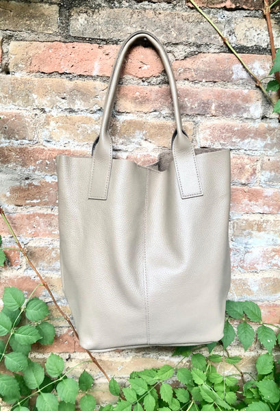 Tote leather bag in beige. Leather shopper in GENUINE leather. Large carry all bag for your laptop, books. Beige leather shopper.Beige purse