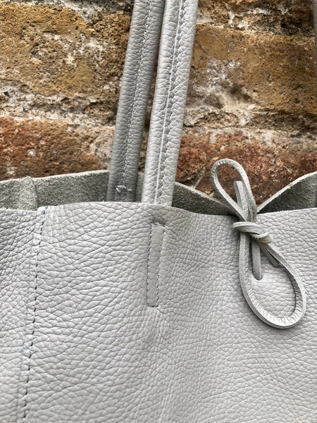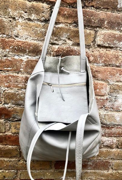 Large tote leather bag in GRAY. Shopper bag. Gray color natural GENUINE leather. Large enough for books or a laptop, tablet, cosmetics bag etc.