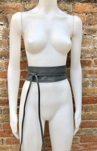 Dark gray OBI BELT in genuine leather. LONGER option. Wrap belt in grey . Waist belt in soft natural leather.