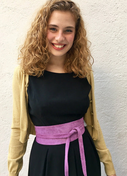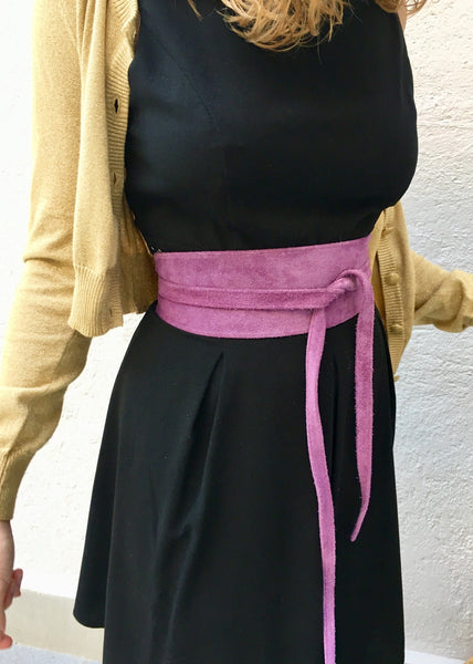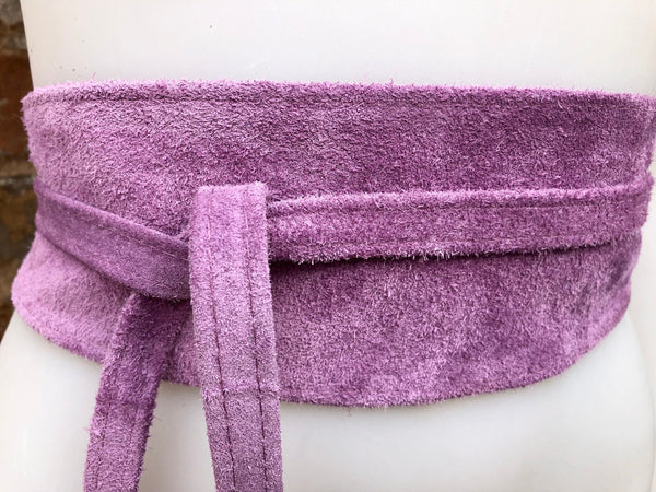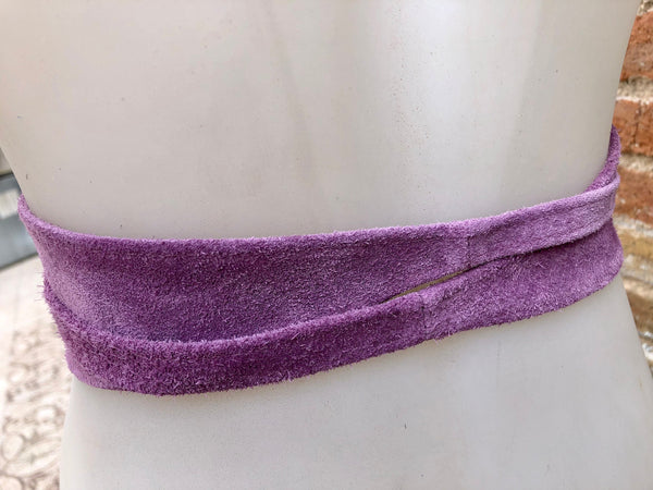 Purple belt in natural suede leather. Waist belt in soft natural suede leather. Mauve color suede SASH.