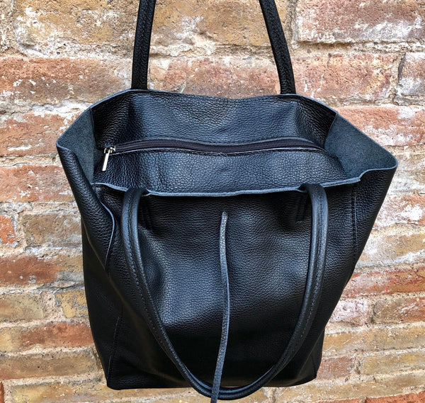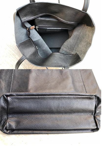 Leather shopper. The inside of the bag is not lined. We added a small leather pouch on the inner part of the bag