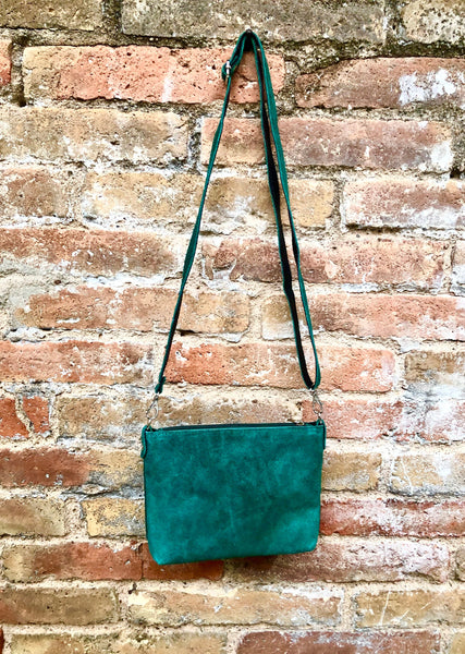 Suede leather bag in GREEN. Natural, soft genuine suede leather. Small cross body bag in suede.