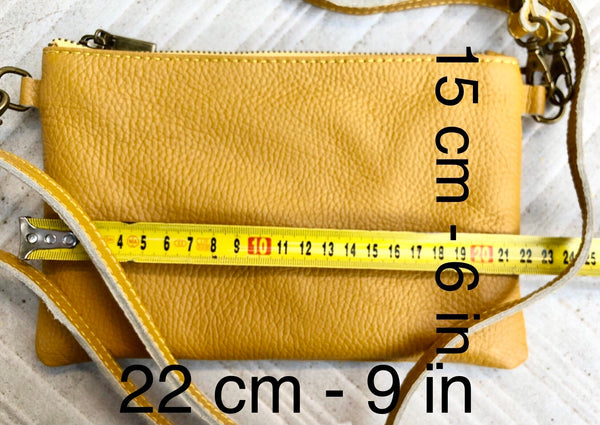 Small leather bag in GREEN. Natural, soft genuine leather. Cross body or shoulder bag in soft but strong leather. BOHO, Festival cross over bag. Closed with a zipper at the top